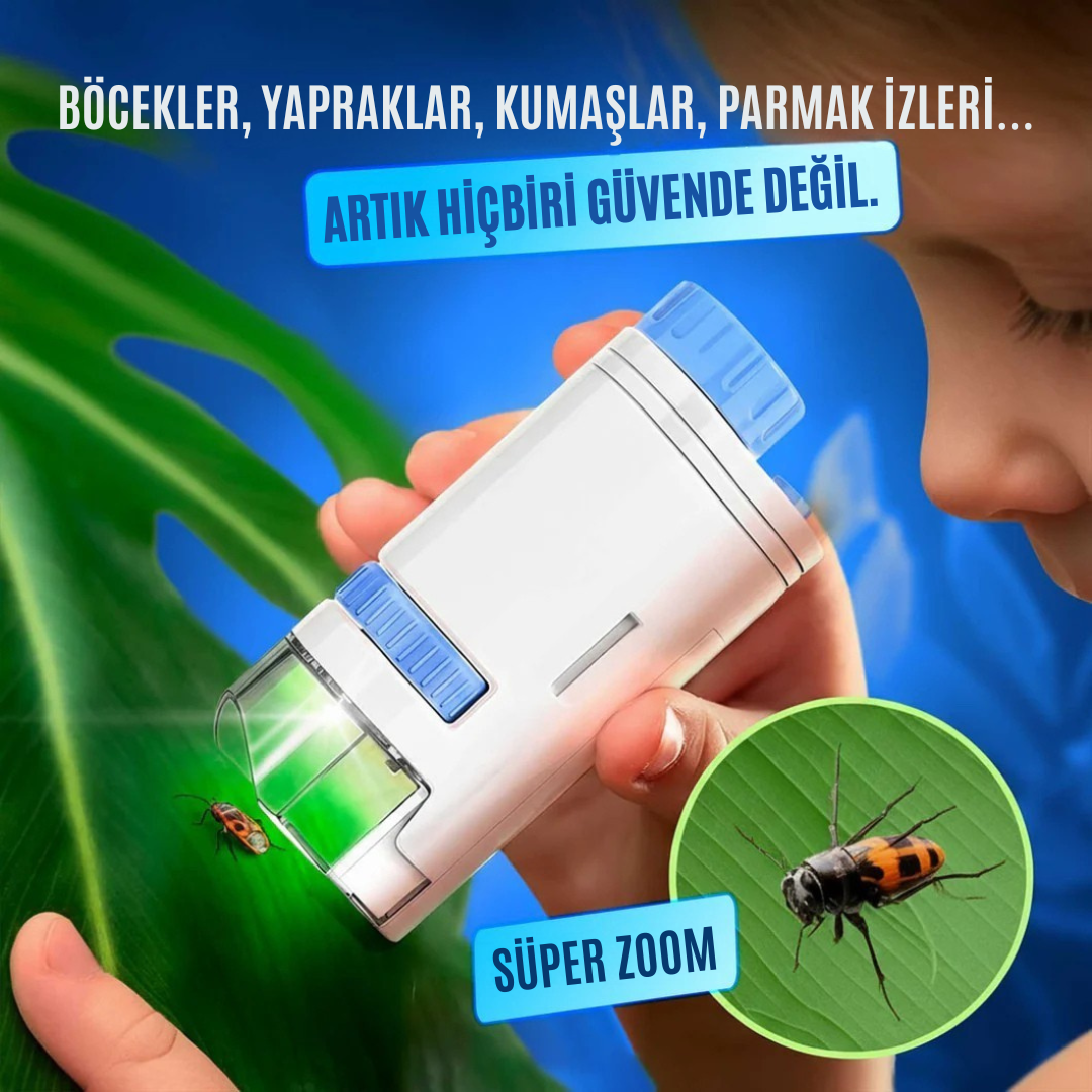 Çocuk dostu bir dijital mikroskoptur. 200x’e kadar yakınlaştırma özelliğiyle çocukların çevrelerindeki dünyayı keşfetmesini, fotoğraf ve video çekmesini sağlar.